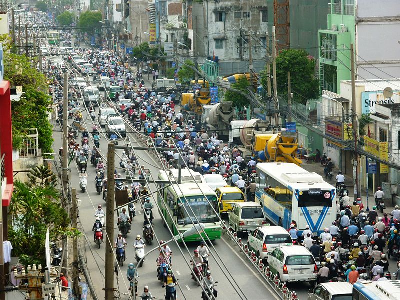 The most popular mode of getting around the busy streets of Ho Chi Minh is on a scooter. Traffic in the major cities of Vietnam can get heavy during rush hour! |